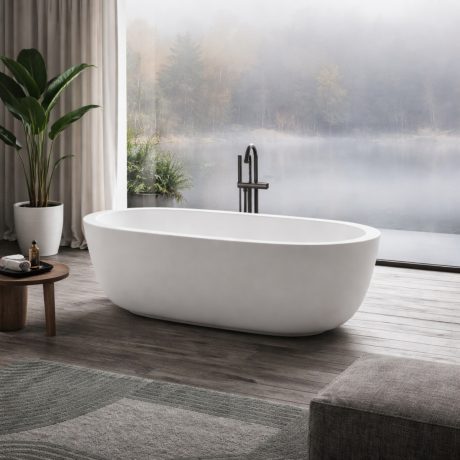 Prețul inițial a fost: 9.885,00 lei.8.896,50 leiPrețul curent este: 8.896,50 lei. cu TVACada freestanding ovala din mineral composite 167 cm, lucioasa, cu preaplin integrat
