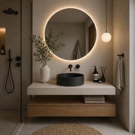 Prețul inițial a fost: 3.895,99 lei.3.506,39 leiPrețul curent este: 3.506,39 lei. cu TVALavoar pe blat rotund din mineral composite 40 cm, finisaj mat