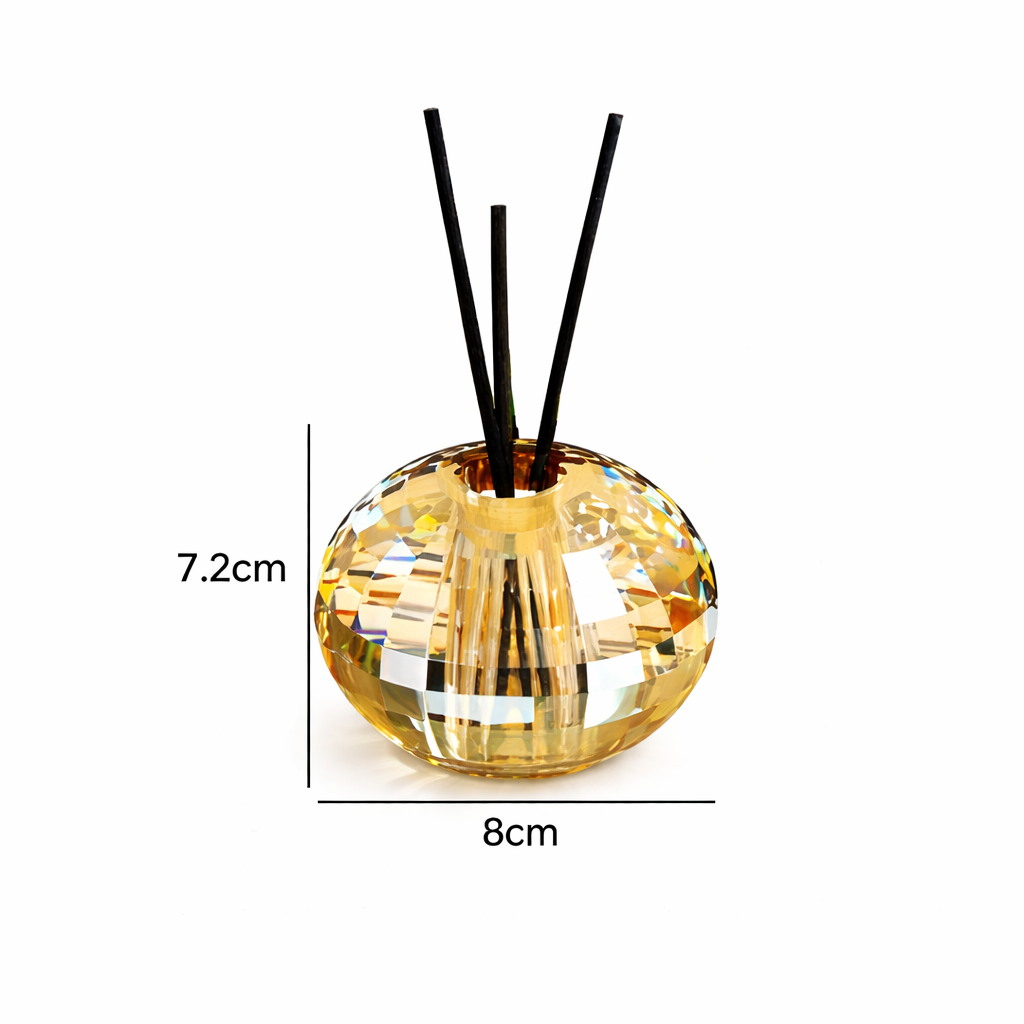 Difuzorul de parfum pentru ambient realizat din cristal decorativ auriu combină funcționalitatea cu designul elegant, fiind ideal pentru parfumarea discretă a spațiilor interioare.