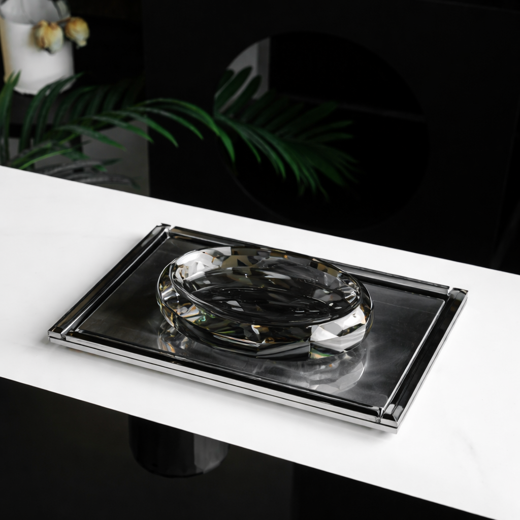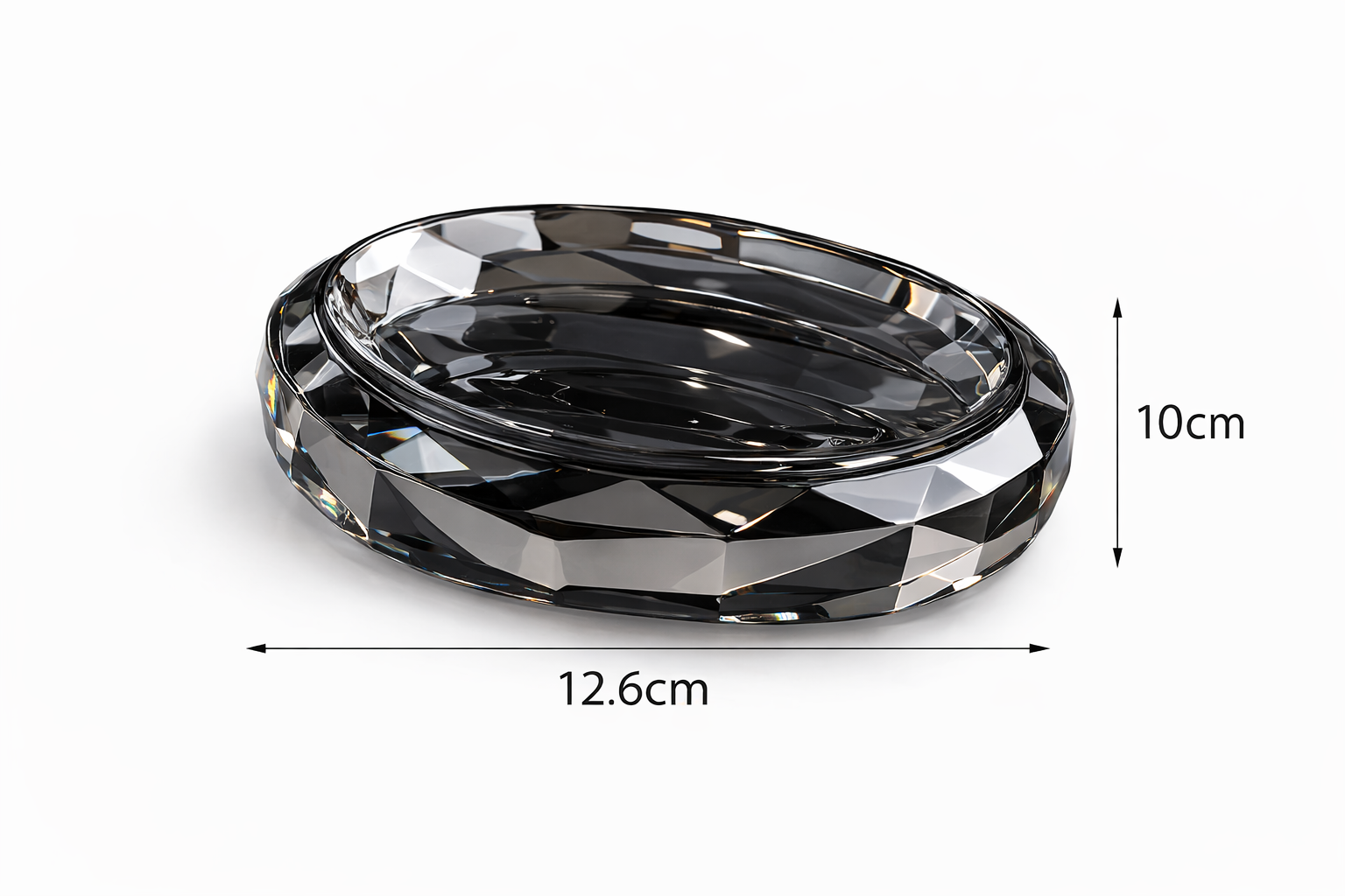 Suportul pentru săpun din cristal gri fumuriu este conceput pentru a adăuga un plus de eleganță și rafinament în baie.