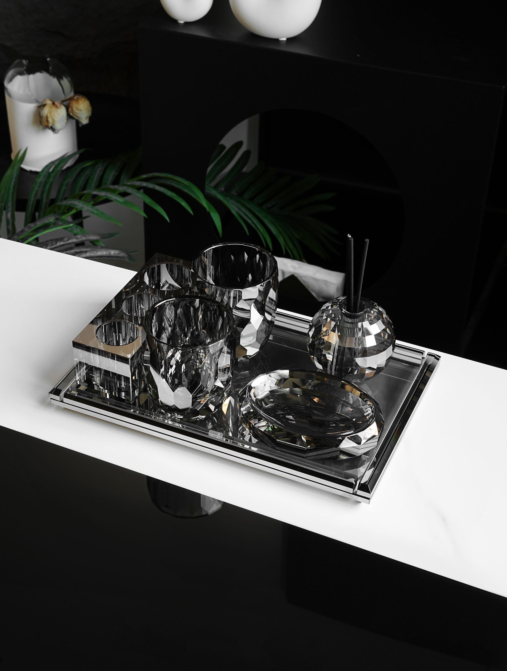 Designul său oval și textura inspirată din cristal creează reflexii subtile ale luminii și transformă acest accesoriu într-un element decorativ discret, dar de efect. De asemenea, amplasat pe blatul lavoarului, pe o poliță sau lângă cadă, suportul pentru săpun completează armonios decorul unei băi moderne.