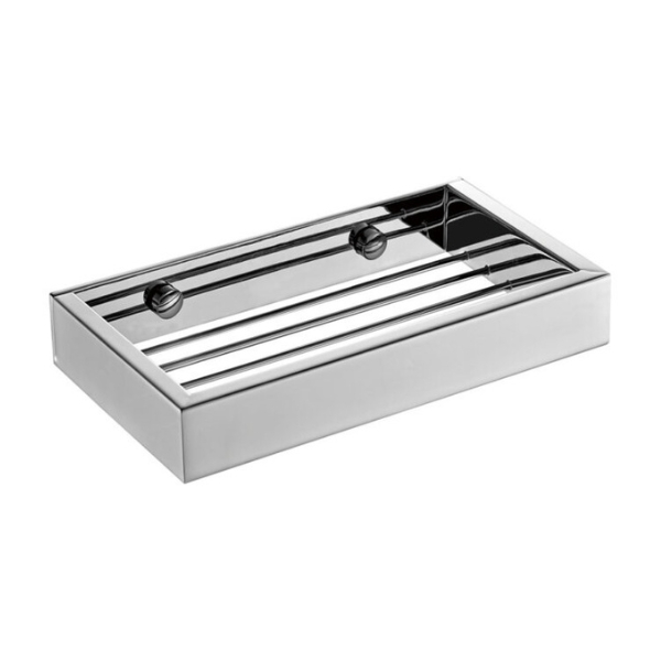 Acest suport sapun crom este conceput pentru a completa armonios accesoriile moderne din baie. Designul sau rectangular cu linii drepte ofera un aspect minimalist si elegant.