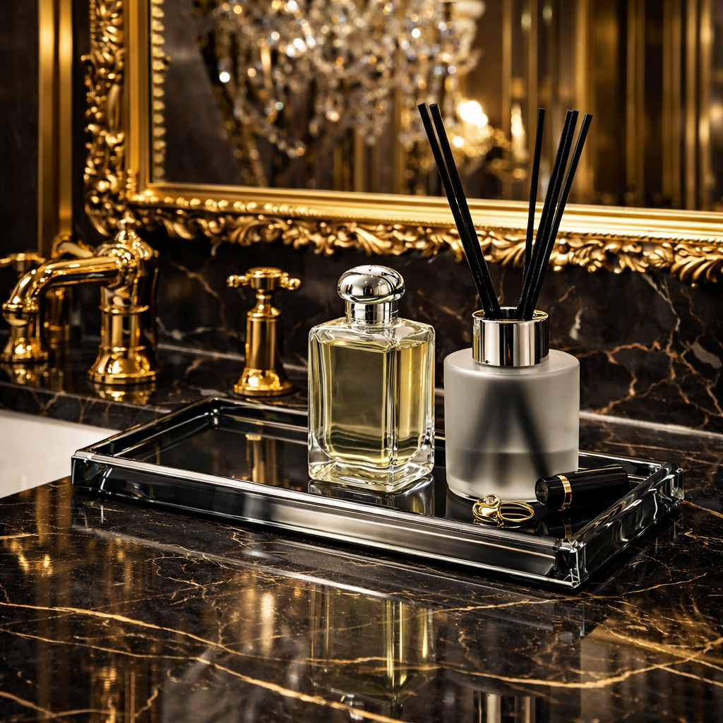 Suprafata plata si marginile fațetate permit organizarea parfumurilor, dozatoarelor de sapun, difuzoarelor de parfum sau a altor accesorii utilizate zilnic. Dimensiunea de 30 × 12 cm ofera mai mult spatiu de organizare, fiind ideala pentru blaturi de baie mai mari.