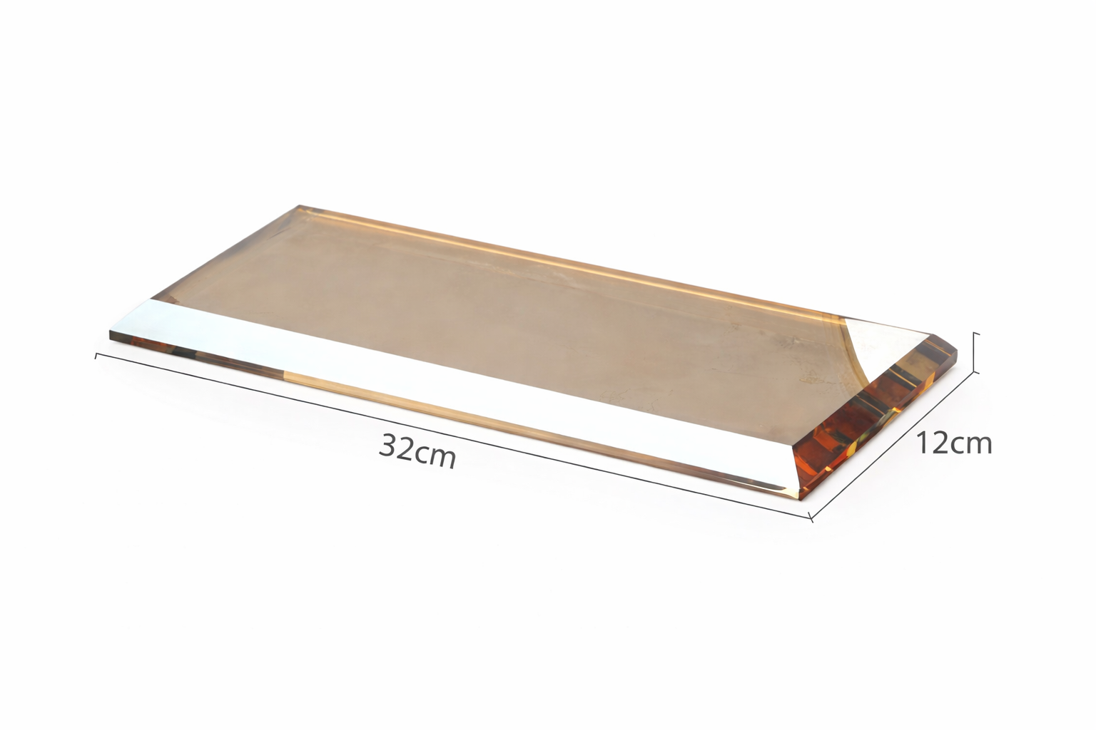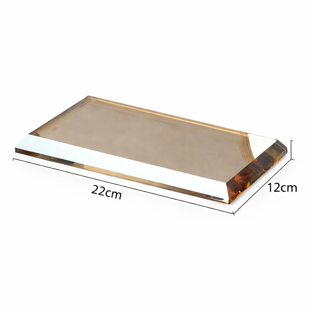 Culoarea aurie transparenta si designul elegant transforma aceasta tava intr-un element decorativ sofisticat, potrivit pentru bai moderne, hoteluri sau spa-uri. Poate fi folosită pentru organizarea accesoriilor în tava cristal auriu, adăugând stil și funcționalitate oricărui spațiu de baie.