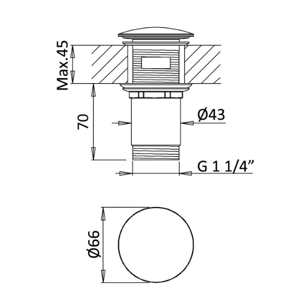 Mecanismul permite deschiderea și închiderea scurgerii printr-o simplă apăsare.