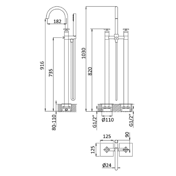 Baterie cada freestanding HERA – eleganta pentru cazi freestanding