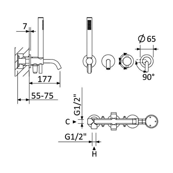 Configurația cu 3 funcții oferă control optim între cadă și duș, asigurând o experiență completă de utilizare.