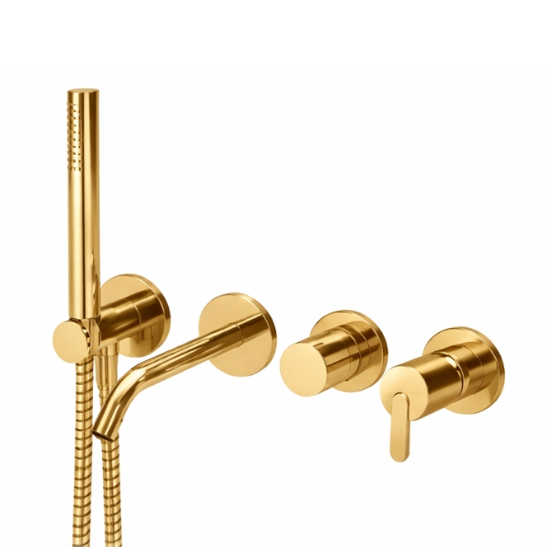 Bateria de cadă încastrată LEAF SUNRISE impresionează prin finisajul auriu premium și designul elegant, fiind alegerea ideală pentru băi moderne și rafinate.