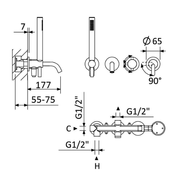 Adancime montaj: 55 – 75 mm