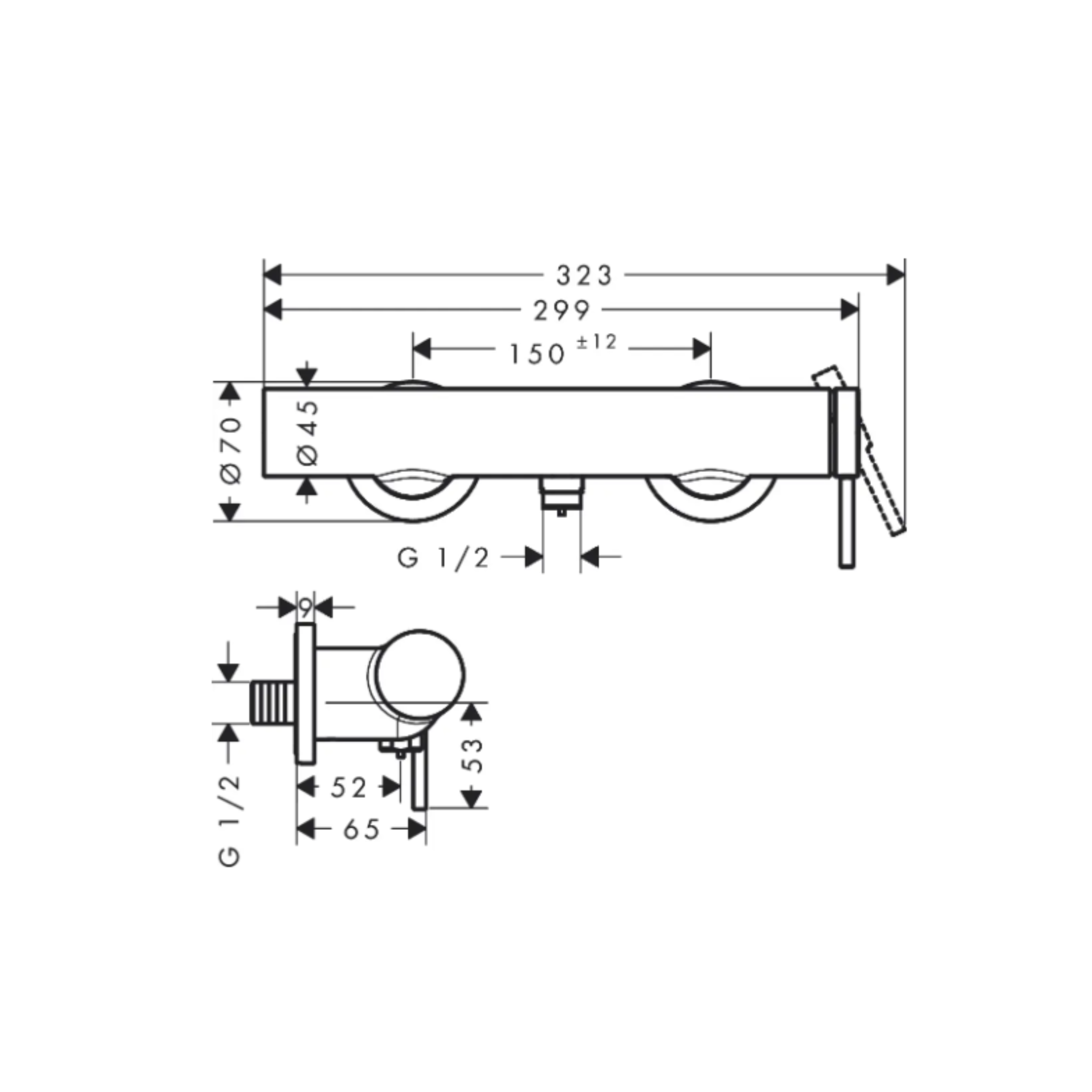 Bateria de duș Hansgrohe Tecturis S, cu finisaj cromat elegant, este proiectată pentru a adăuga atât stil, cât și funcționalitate băilor moderne. Destinată montării pe perete, această baterie utilizează un control monocomandă care facilitează ajustarea debitului de apă cu ușurință. Distanța dintre axe este de 150 mm (± 12 mm), oferind flexibilitate în instalare.