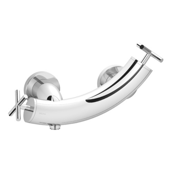 Corpul bateriei este caracterizat de o formă arcuită elegantă care oferă o apariție modernă și sofisticată. Mânerele tip cross handle completează designul și oferă un control precis al temperaturii și debitului de apă.