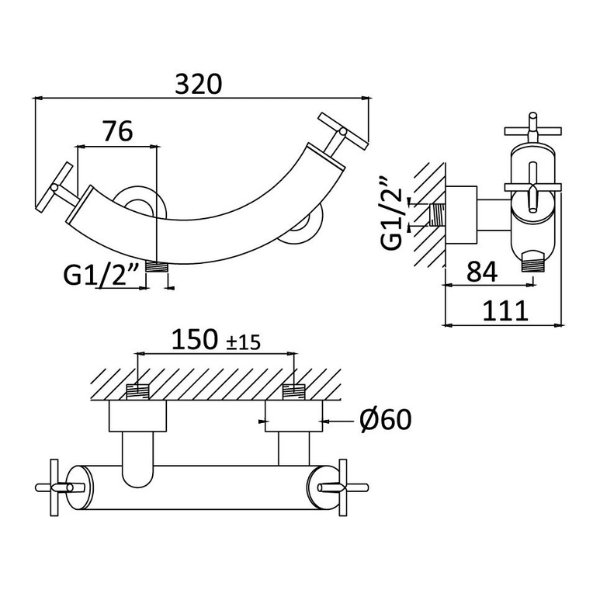 Distanță racorduri: 150 ± 15 mm