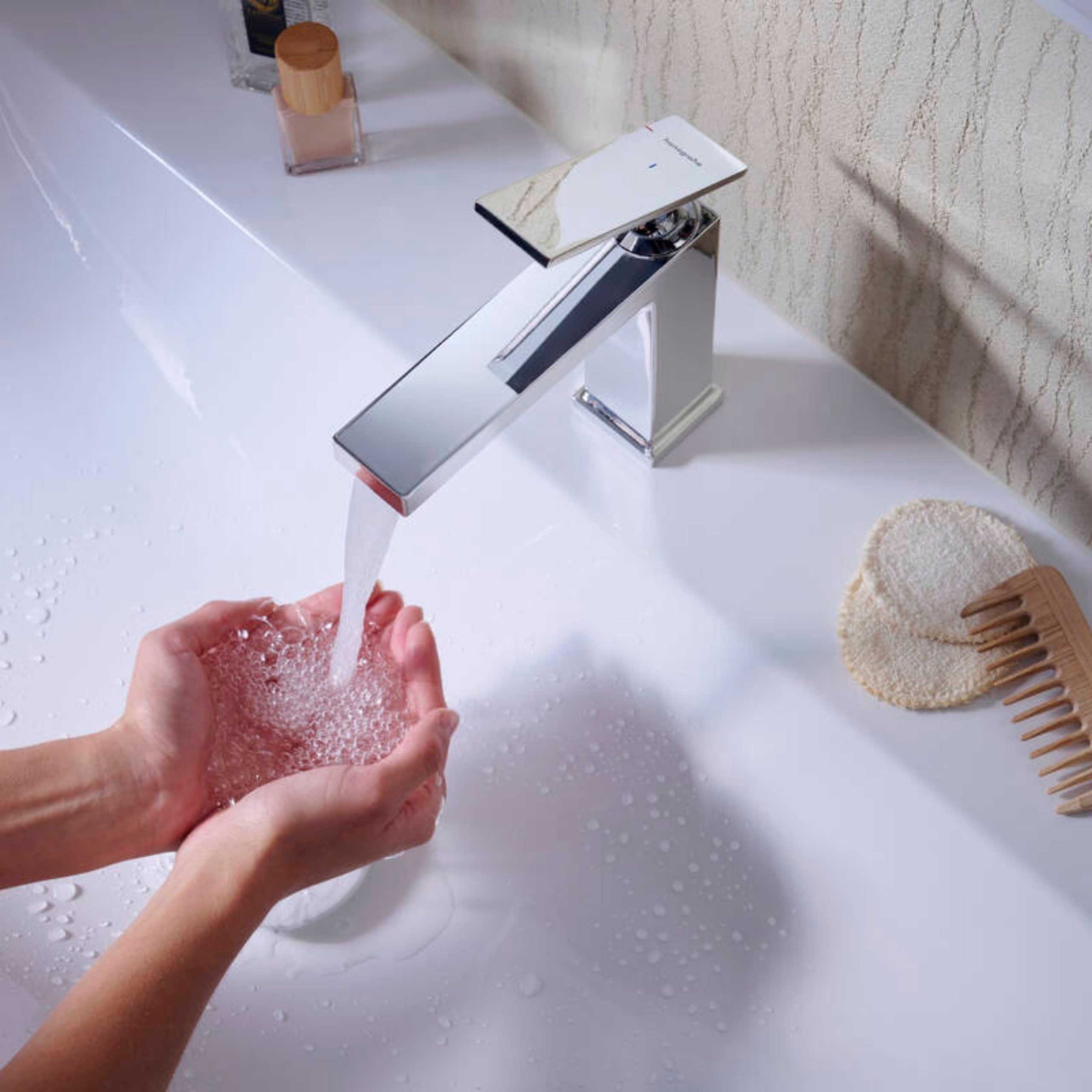 Această baterie are un design stativ, fiind destinată montării pe un singur orificiu, și dispune de un control monocomandă pentru ajustarea ușoară a debitului de apă. Tehnologia CoolStart ajută la economisirea apei calde, iar jetul AirPower asigură un flux plăcut și eficient. Tipul de jet WaterfallStream creează o experiență relaxantă și revitalizantă.