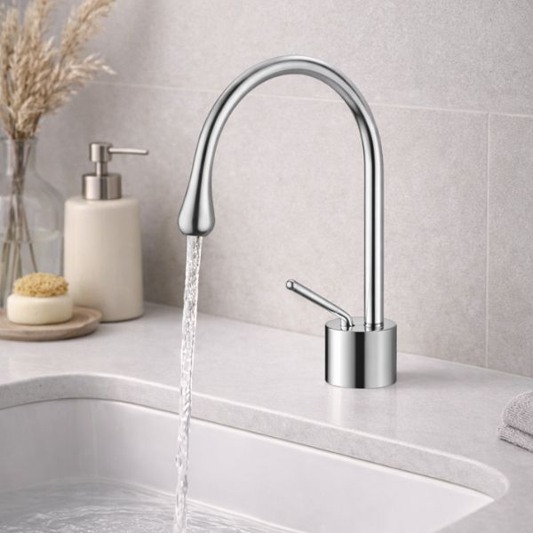 Pipa inalta si arcuita permite un flux confortabil al apei si ofera mai mult spatiu pentru utilizare. Comanda monocomanda permite reglarea usoara si precisa a temperaturii si debitului de apa.
