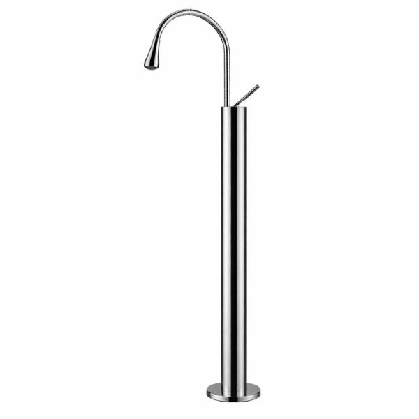 Designul freestanding cu corp cilindric inalt permite montajul direct pe pardoseala sau pe platforme speciale, oferind libertate in configurarea spatiului din baie. Pipa arcuita permite un flux optim al apei si o utilizare confortabila.