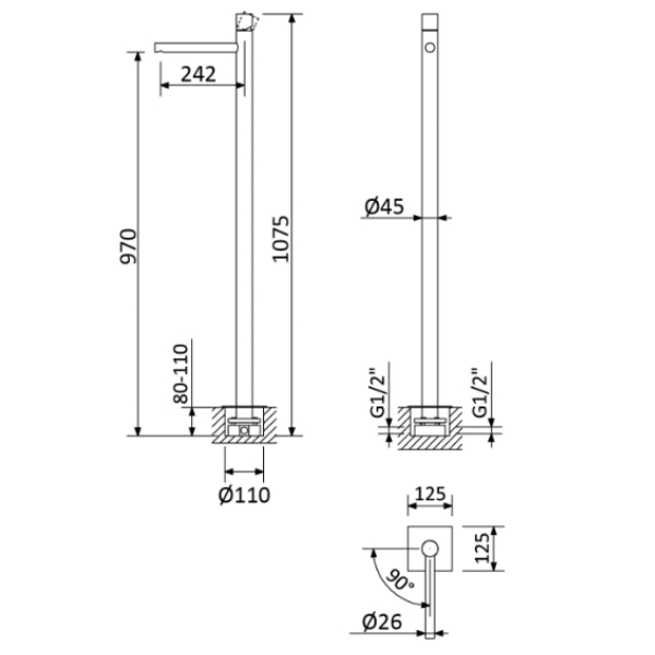 Baterie lavoar freestanding LUSA – eleganta arhitecturala pentru baie