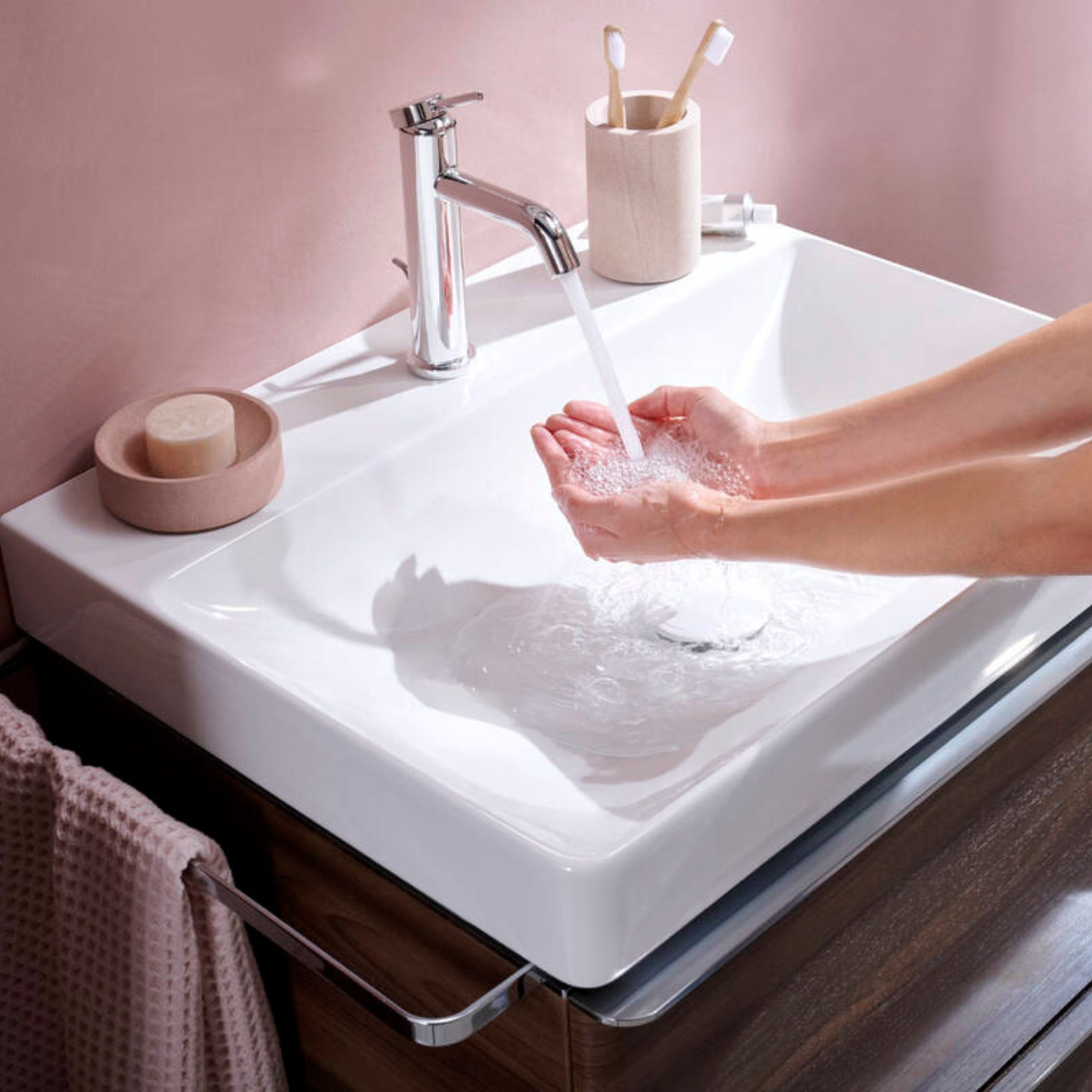 Bateria de lavoar Hansgrohe Tecturis S este o alegere sofisticată și eficientă, ideală pentru băile moderne. Cu un finisaj crom lucios care adaugă un aspect elegant, această baterie monocomandă este concepută pentru a oferi un control ușor și precis asupra debitului de apă. Cu o proiecție de 116 mm și o înălțime a pipei de 105 mm, aceasta oferă o zonă confortabilă pentru utilizare (ComfortZone 110).