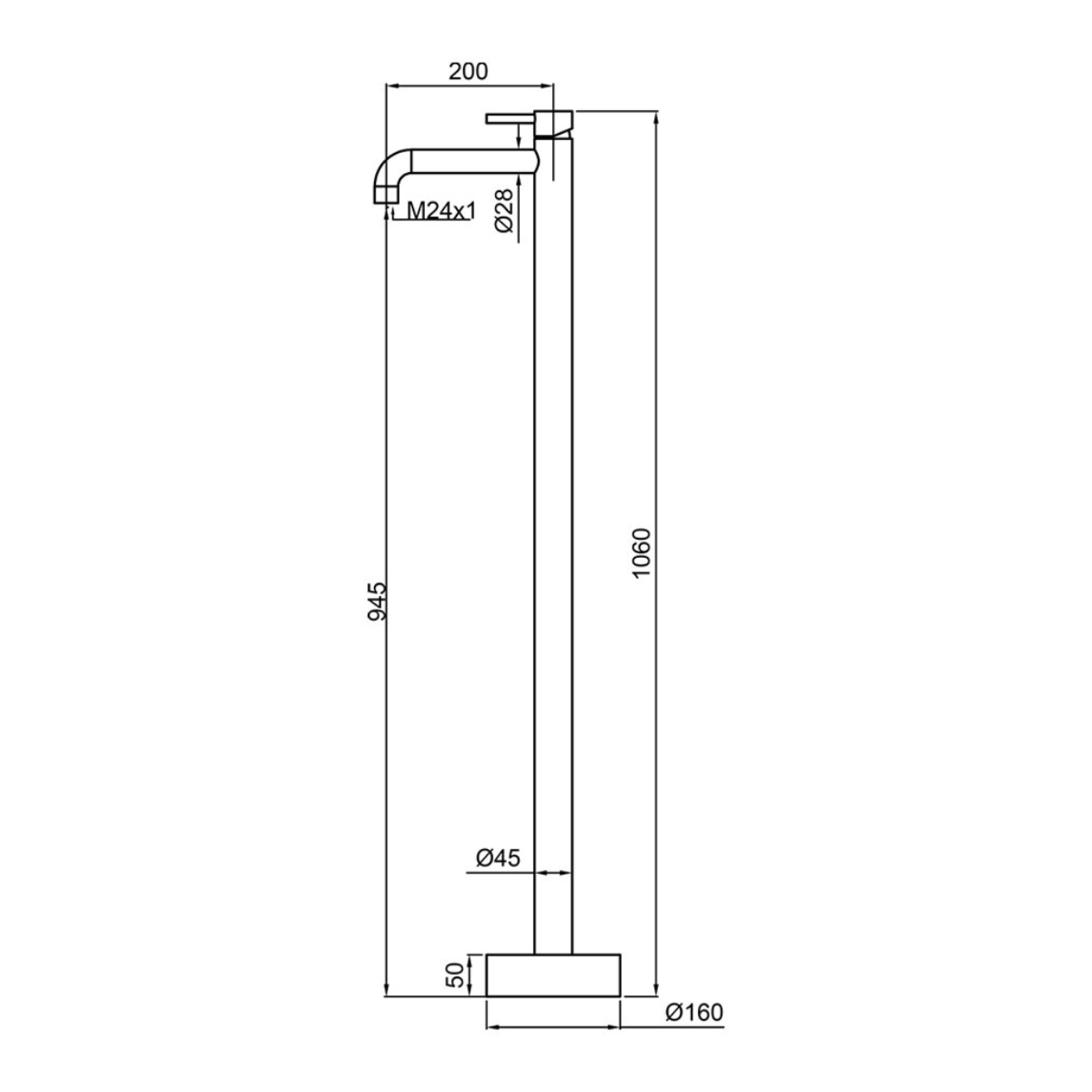 Baterie lavoar tip totem cu finisaj crom lucios, montaj pe pardoseală și mecanism ceramic de 35 mm. Include racorduri lungi de 1050 mm și oferă debit controlat, funcționare silențioasă și compatibilitate cu lavoare freestanding.
