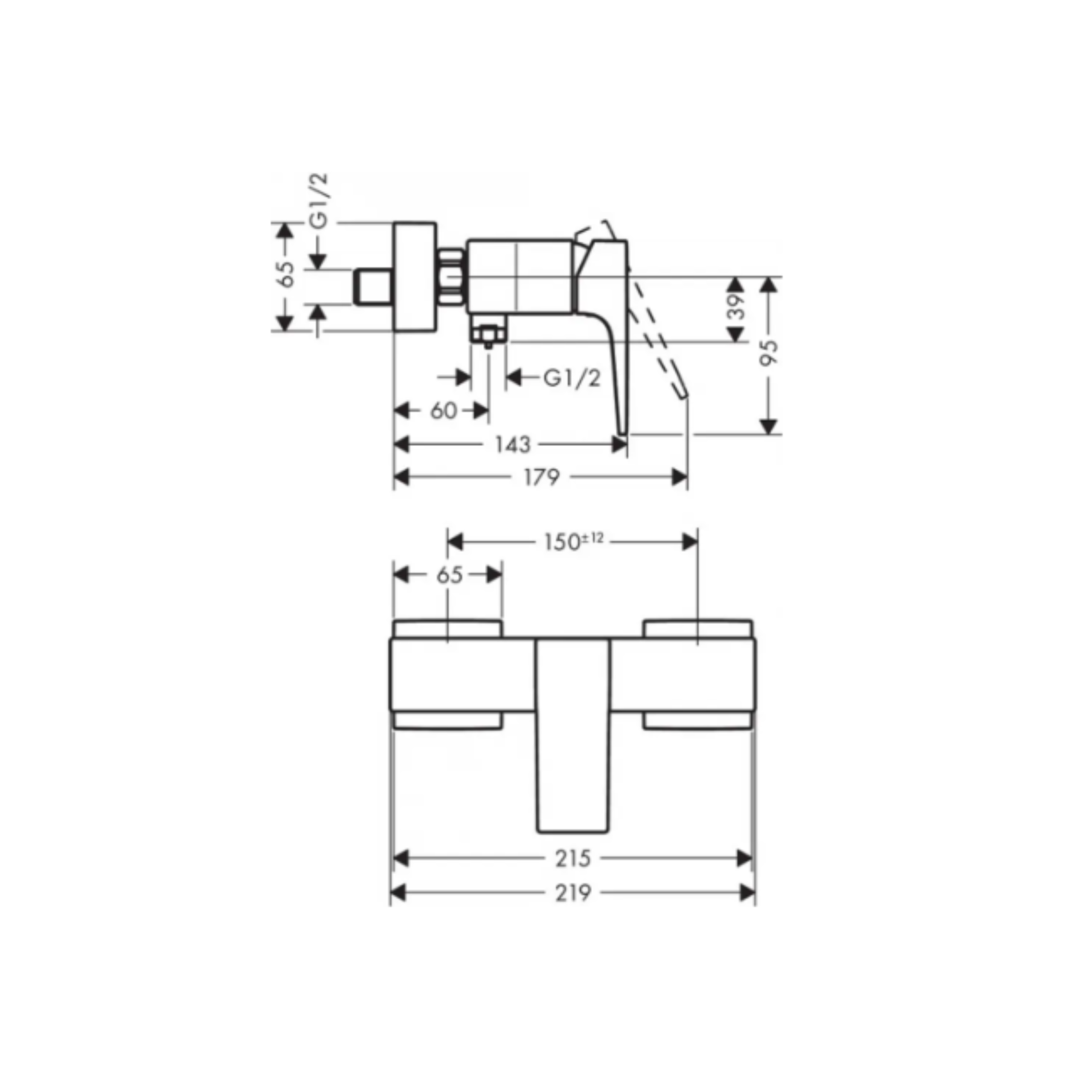 Baterie de cabină duș Hansgrohe Metropol, crom, montare pe excentrice, distanța între axe 150 mm ± 12 mm, debit 22 l/min la 0,3 MPa. Echipată cu cartuș ceramic, presiune minimă 0,1 MPa, maximă 1,0 MPa, limitator de temperatură ajustabil, valvă protecție reflux, amortizor de zgomot, conexiune furtun DN 15, racorduri DN15.