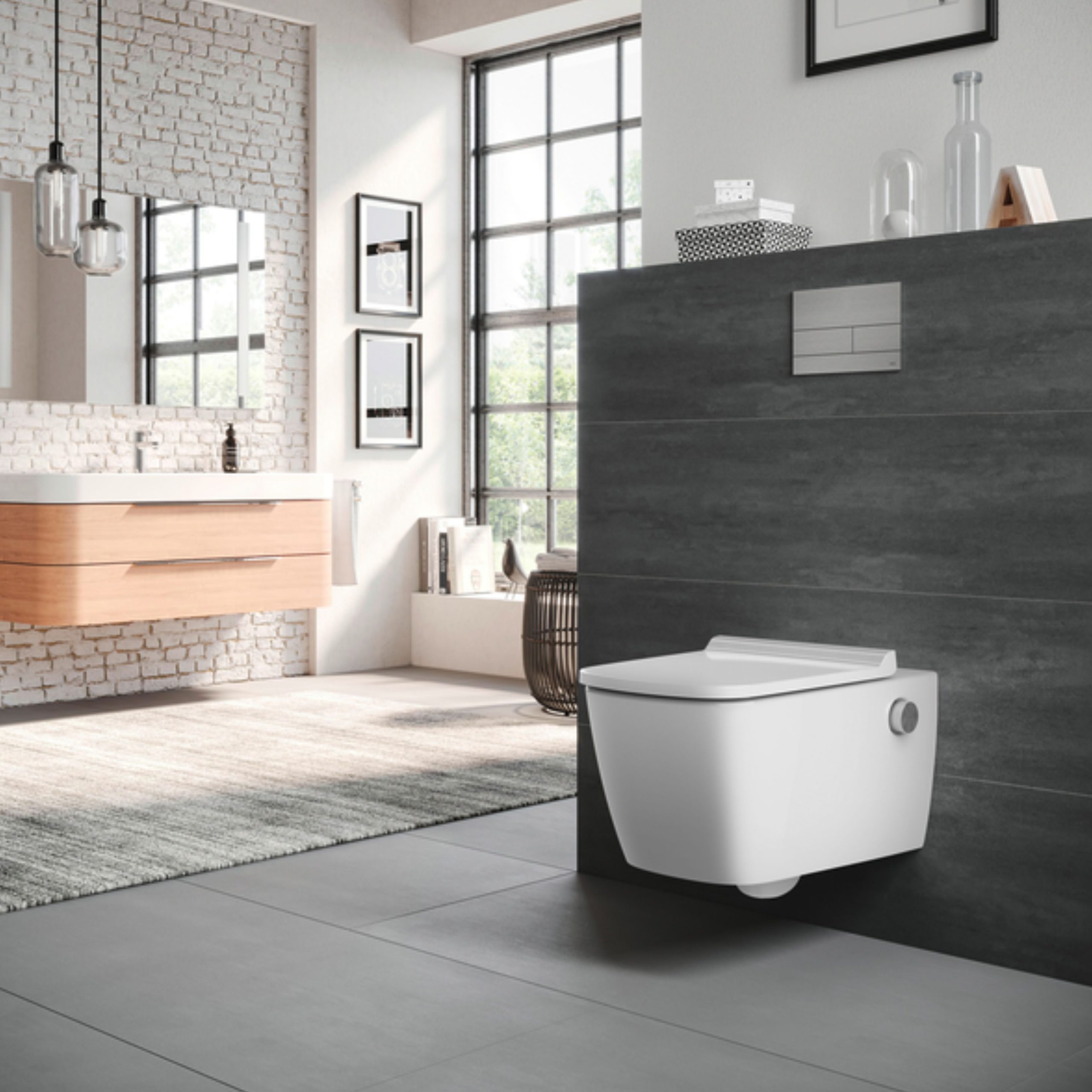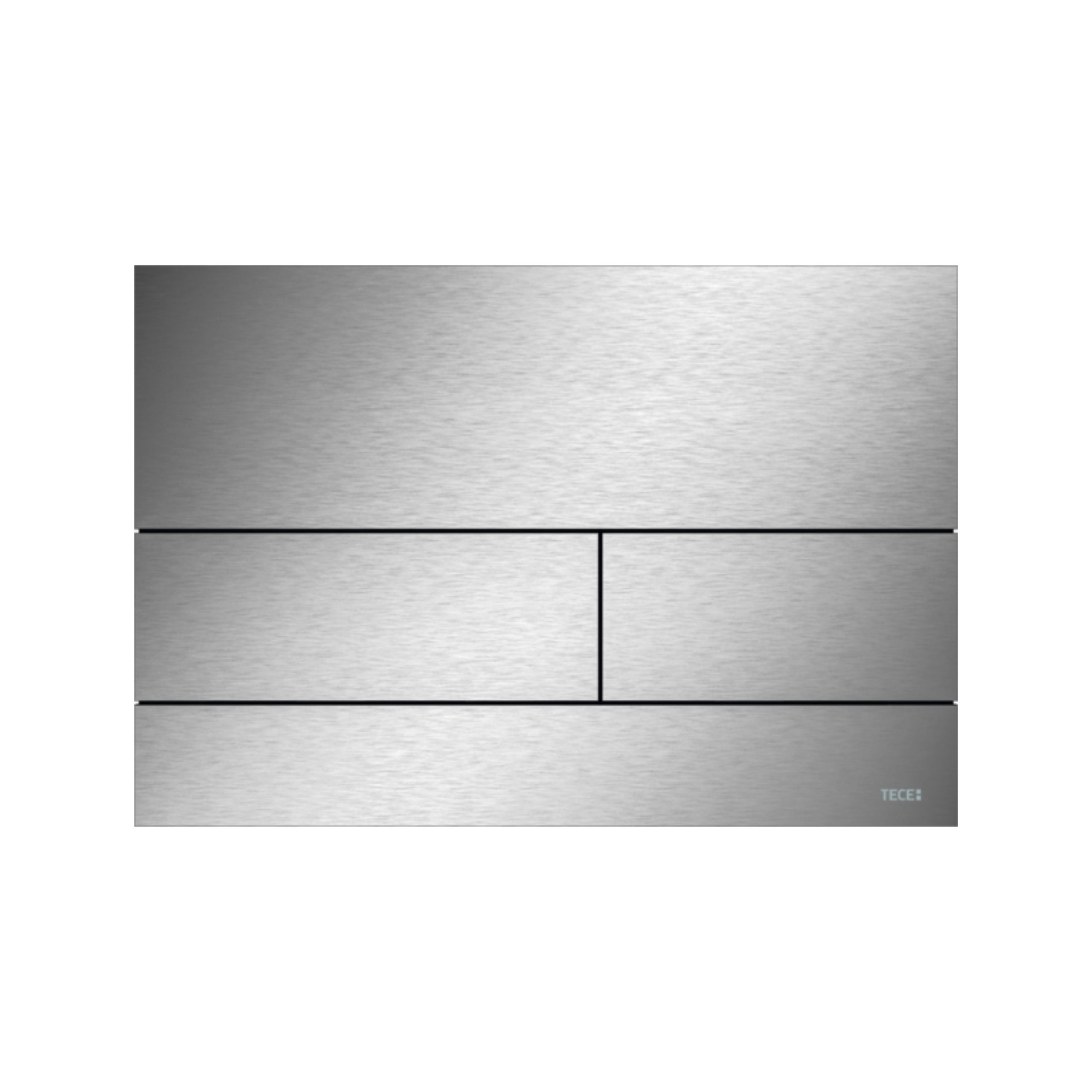 Clapeta de acționare TECEsquare II din oțel inoxidabil mat combină designul modern cu durabilitatea materialelor premium. Finisajul anti-amprentă menține suprafața curată și elegantă, fiind ideal pentru băi moderne sau spații sanitare cu utilizare intensă.