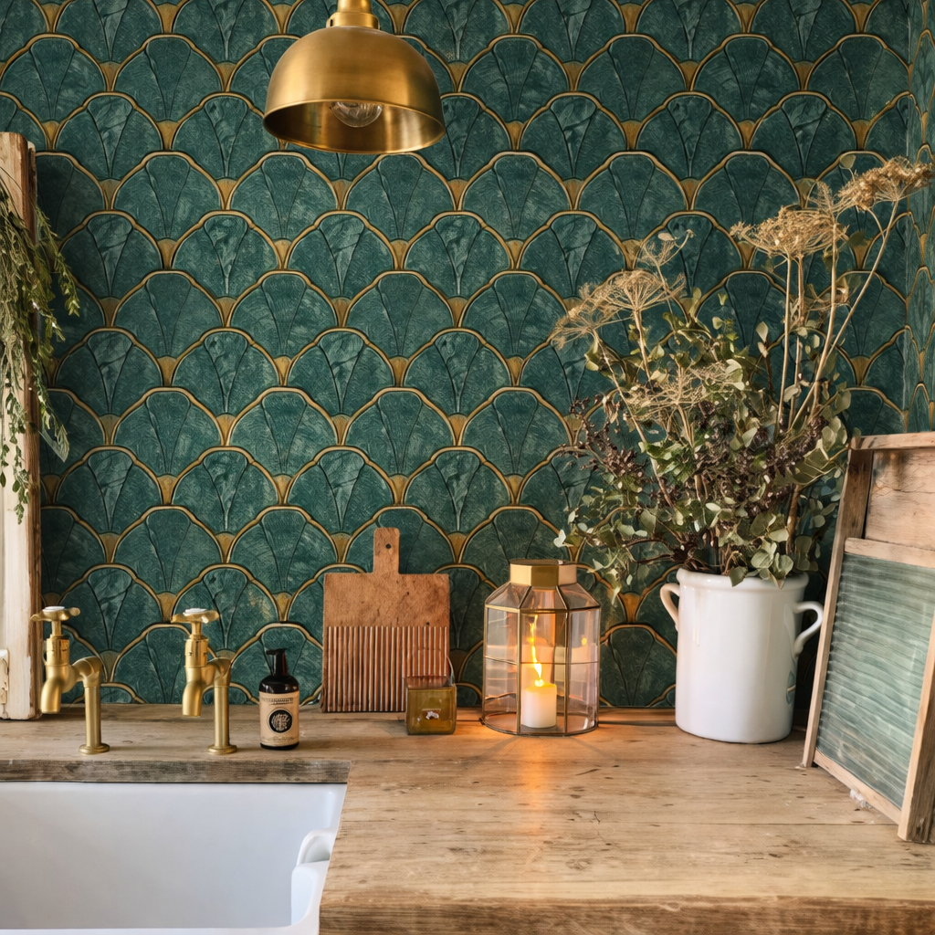 • cromatică luxury: verde smarald, verde petrol, accente aurii