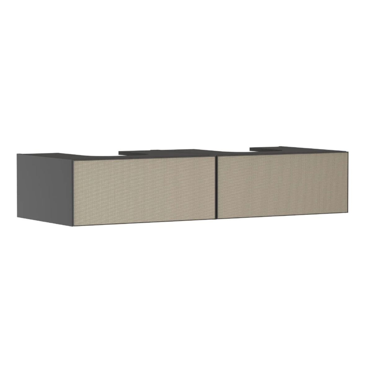 Dulapul pentru lavoar Hansgrohe Xevolos E are un design modern si minimalist, potrivit pentru amenajari de baie contemporane. Finisajul gri mat combinat cu bronz texturat ofera un aspect elegant.