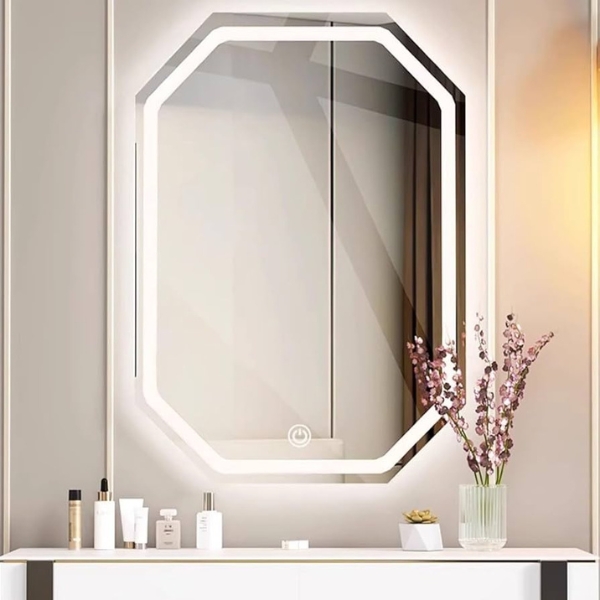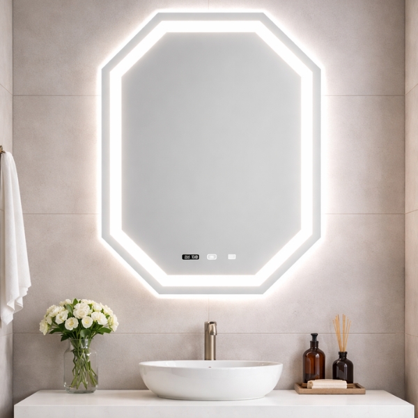 Oglinda baie LED octagonala EXSPR224 este conceputa pentru interioare contemporane in care designul si functionalitatea merg perfect impreuna. Aceasta oglinda baie LED octagonala se remarca prin forma sa geometrica eleganta, care aduce dinamica vizuala si rafinament in spatiul baii.