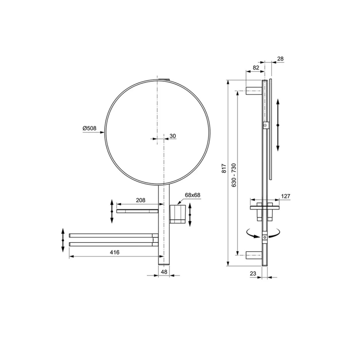 Oglindă fixă de 500 mm pentru un aspect practic și elegant