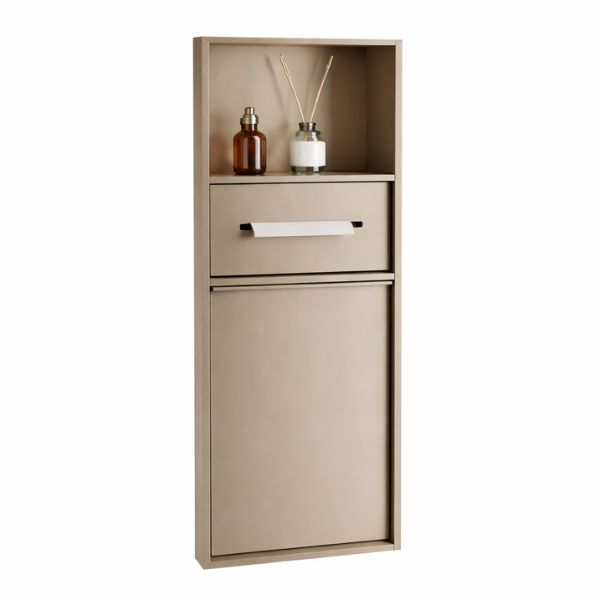 Designul incastrat permite integrarea perfecta in perete, oferind un aspect curat si minimalist. Acest tip de solutie este ideal pentru baile moderne unde organizarea eficienta a spatiului este esentiala.
