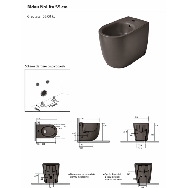 Acest bideu stativ Maro Mat este proiectat pentru a oferi un plus de igienă și confort în baie, combinând designul contemporan cu funcționalitatea practică.