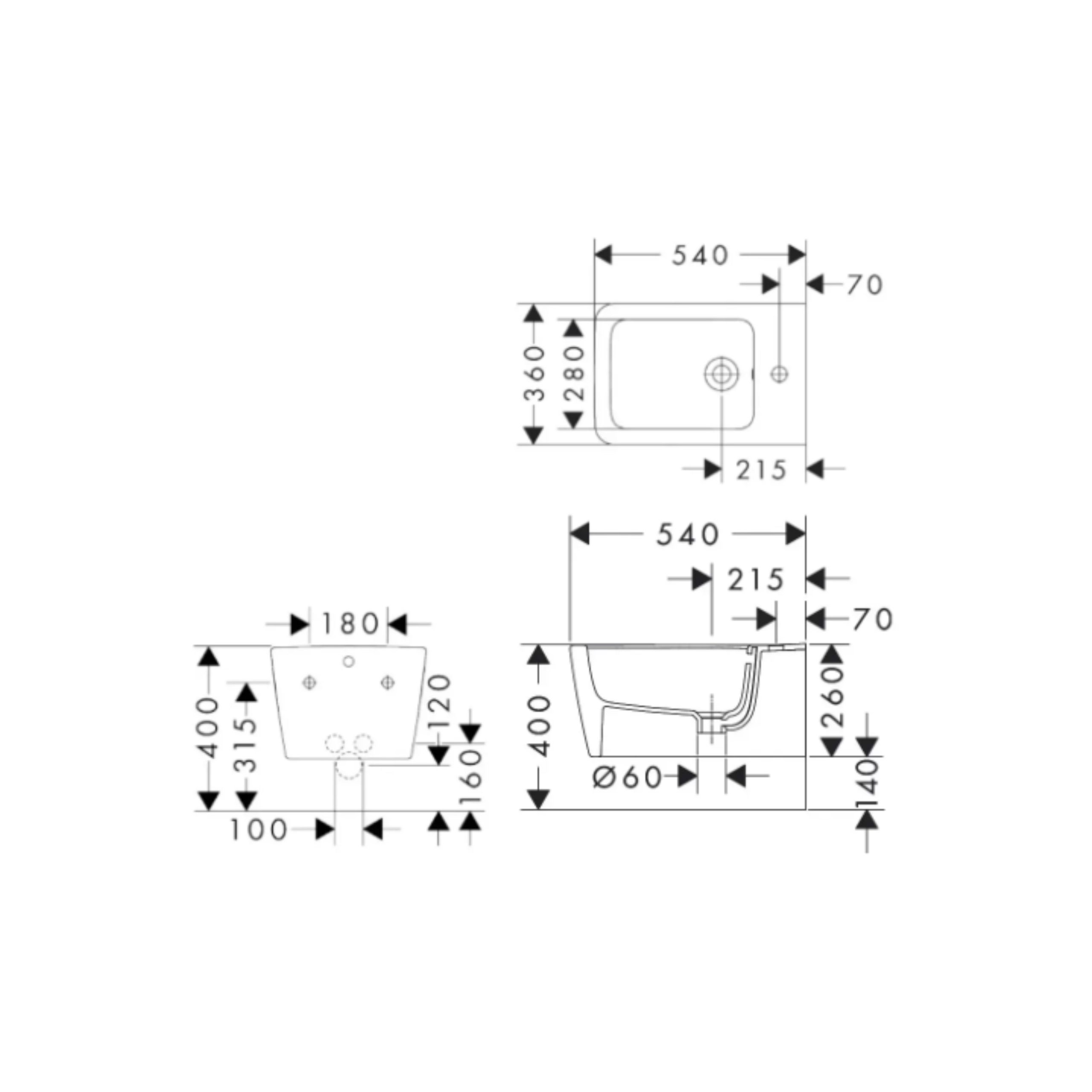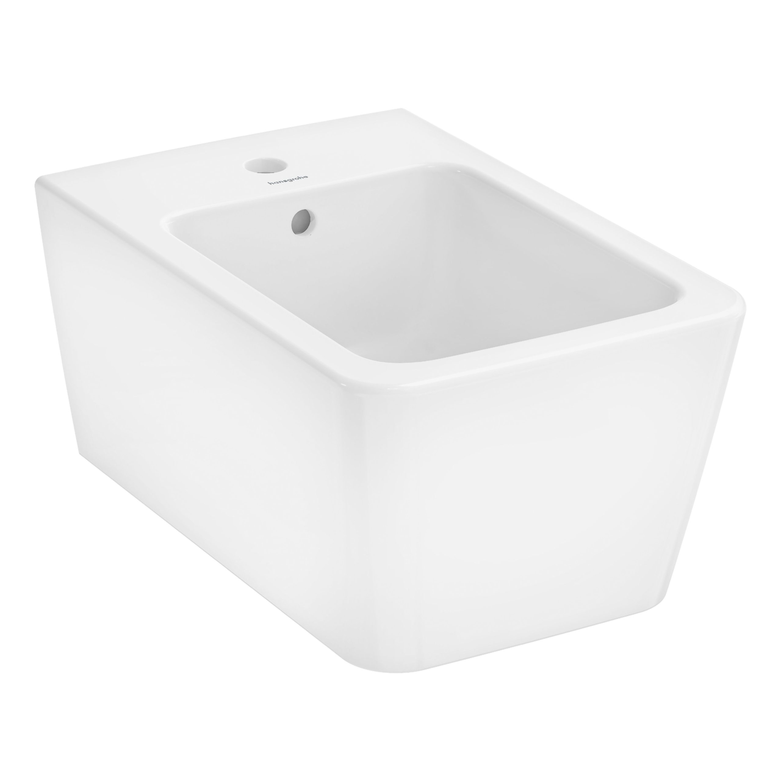 Bideul suspendat Hansgrohe EluPura Q, în alb, are dimensiuni de 540 x 360 x 260 mm și este fabricat din ceramică. Cu tehnologia HygieneEffect pentru igienă, orificiu pentru baterie, preaplin și fixare ascunsă, acesta include și un tampon de amortizare a zgomotului.