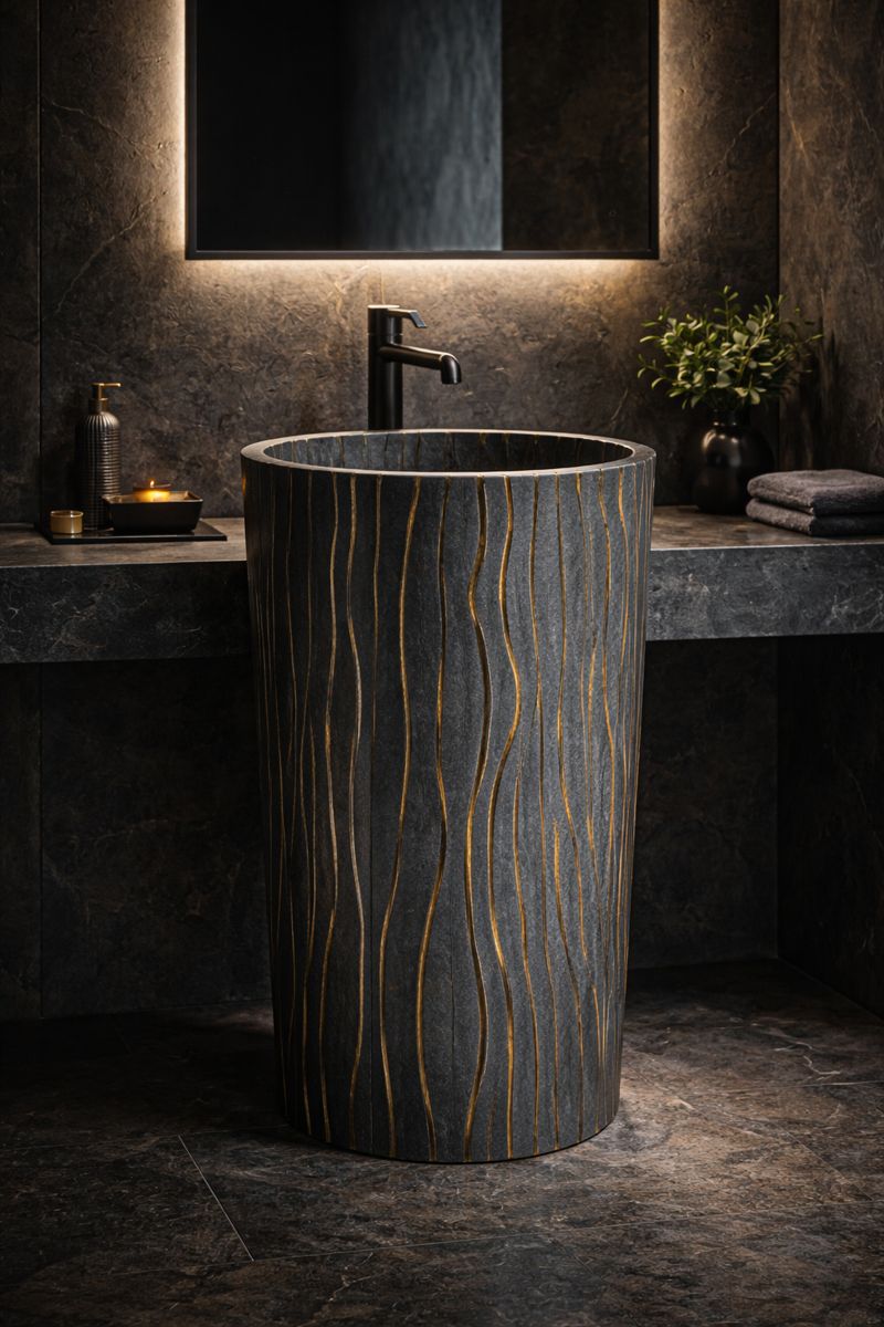 Lavoarul freestanding SOLIN este realizat hand-made din compozit și se remarcă prin textura verticală decorativă și aspectul artistic. Un lavoar premium, ideal pentru băi contemporane și spații cu identitate vizuală puternică.