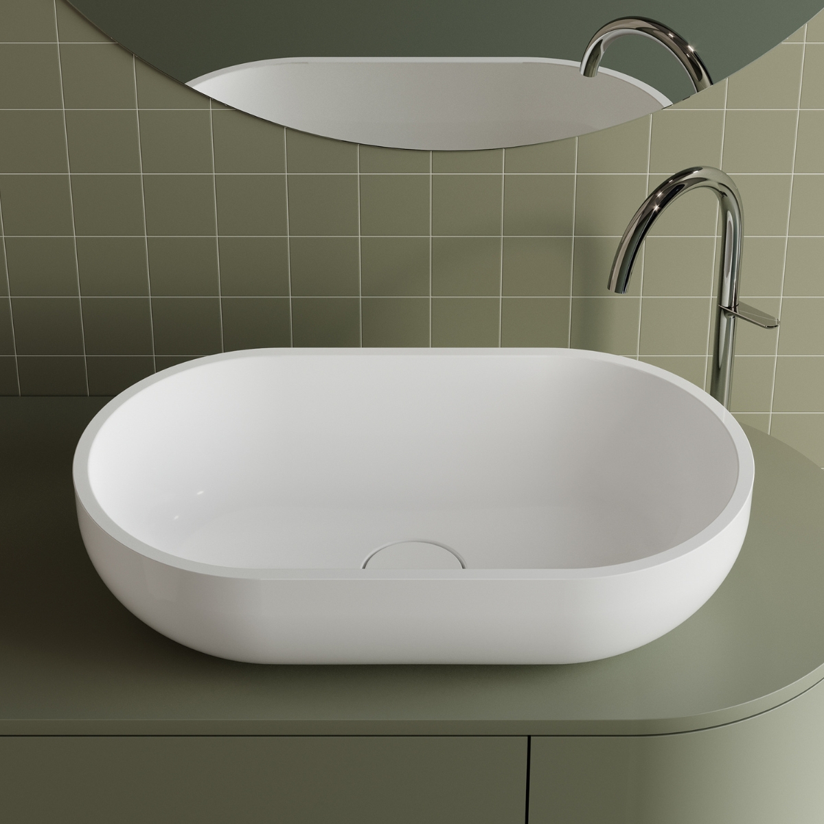 Lavoar pe blat WB 0533 C 600C din Mineral Composite – eleganță ovală și finisaj lucios pentru băi contemporane