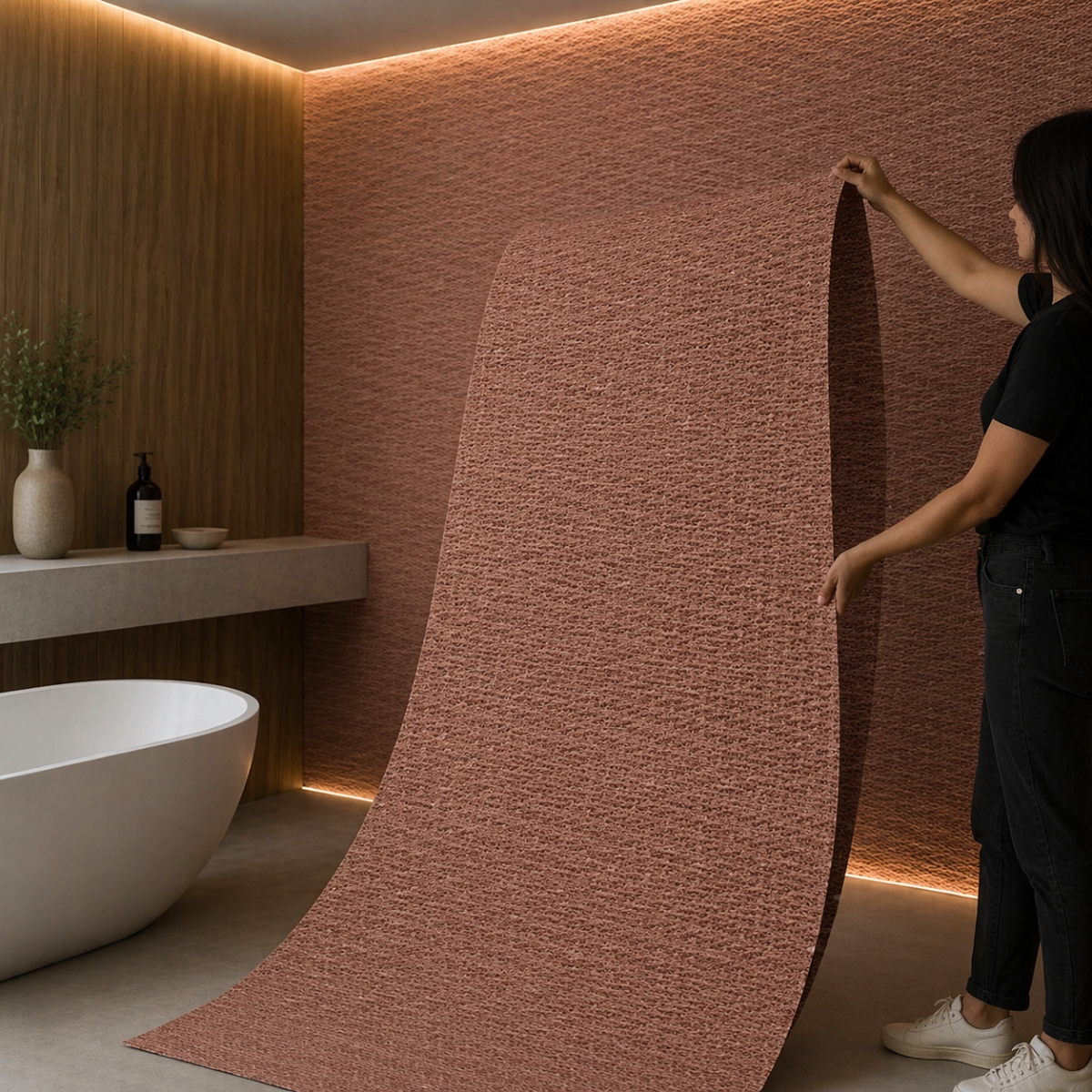 Placa flexibila din piatra naturala Big Weaving Jacinth aduce un design modern si natural prin modelul sau tip impletitura si nuanta calda inspirata din materiale organice.