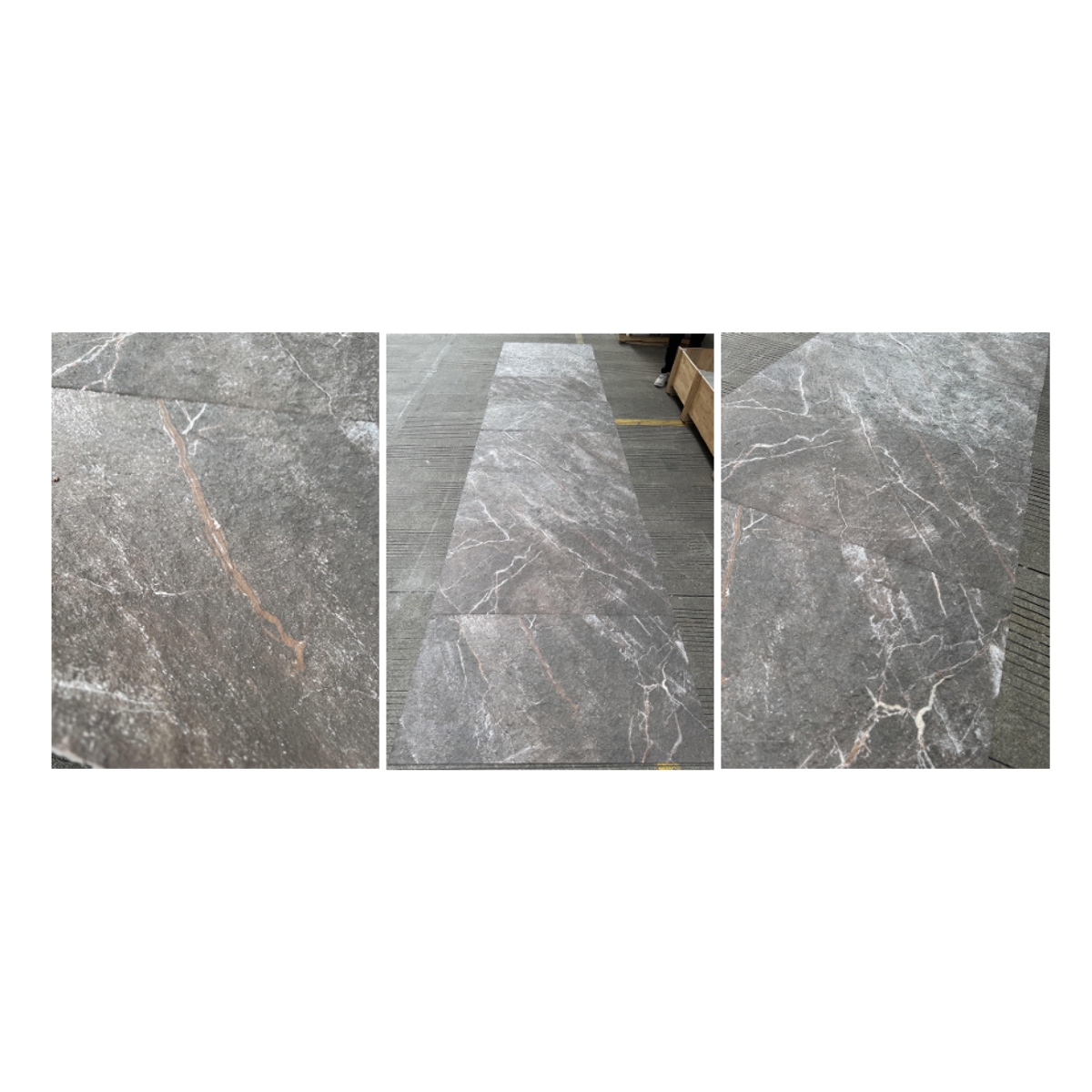 Placa flexibila din piatra naturala Rough Granite Portoro reproduce granitul inchis cu textura rugoasa si venaturi naturale deschise, creand un contrast puternic si elegant.