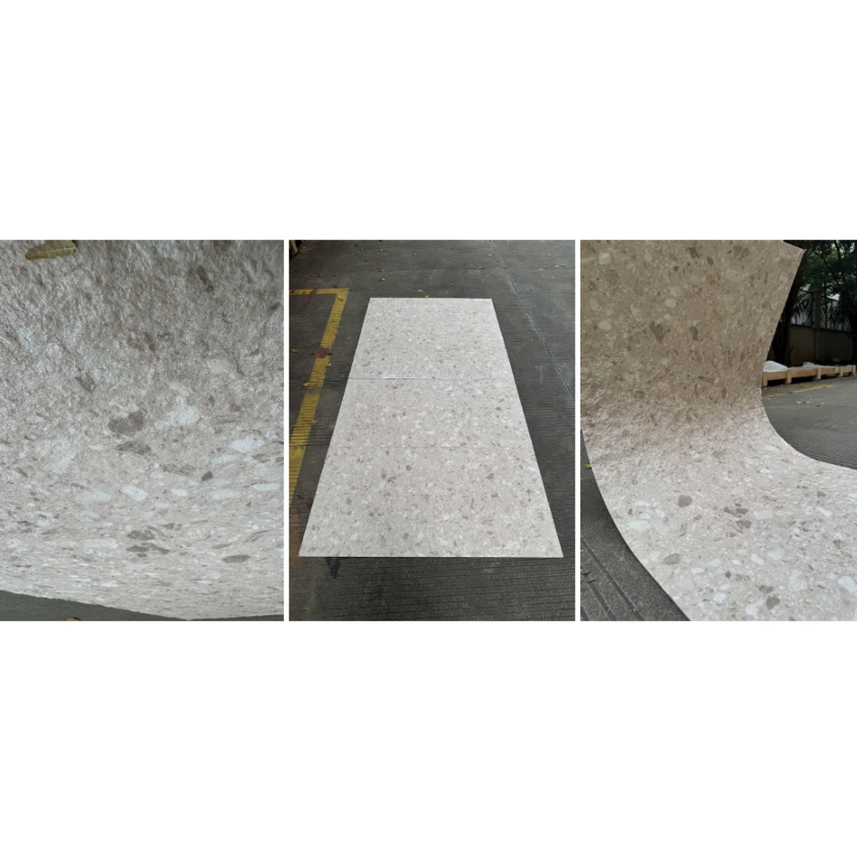 Placa flexibila din piatra naturala Terrazzo Rough Stone Light Grey reproduce aspectul terrazzo intr-o varianta contemporana, cu textura granulata si tonuri de gri deschis.