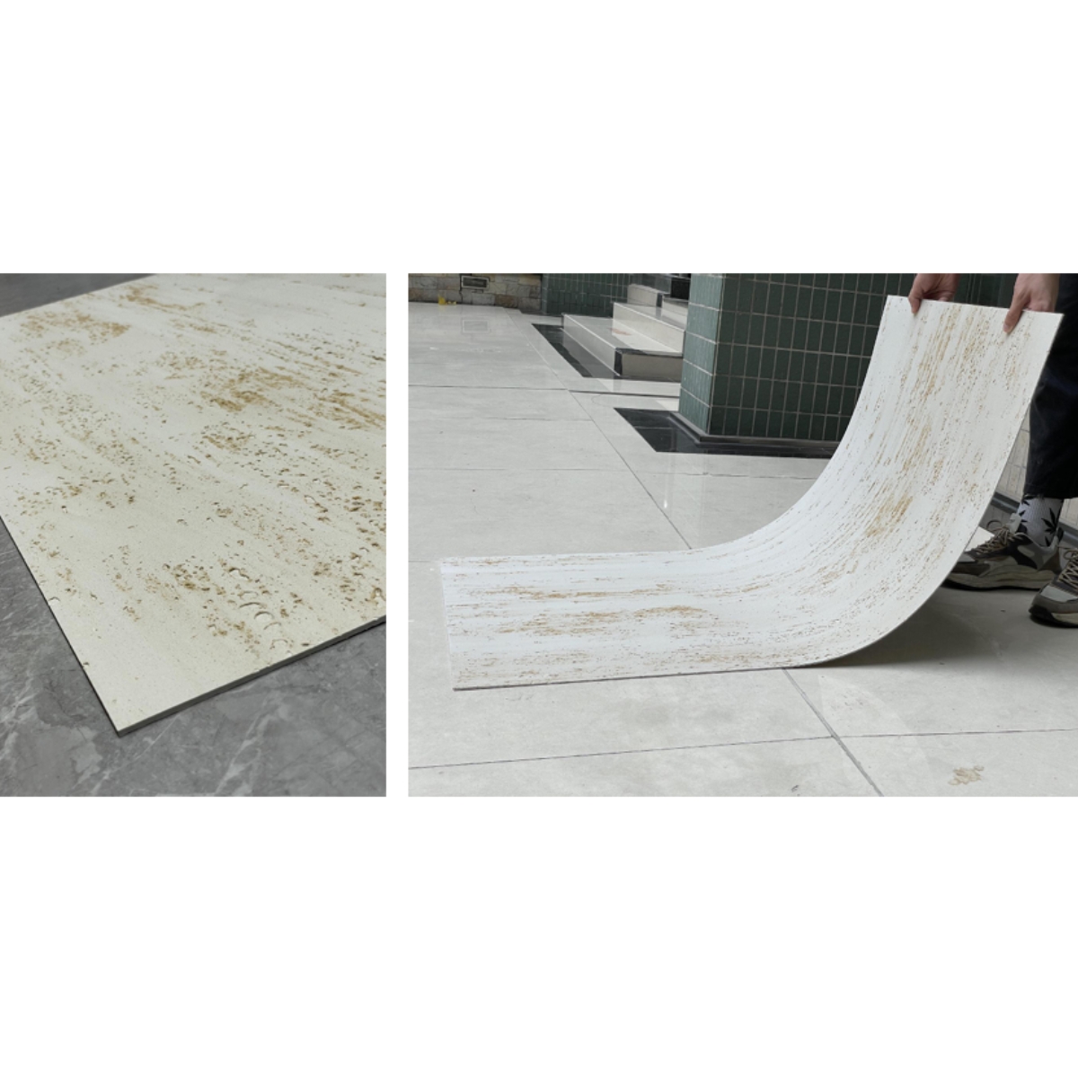 Placa flexibilă travertin white golden definește un produs ideal pentru proiecte moderne, unde estetica și durabilitatea sunt esențiale.