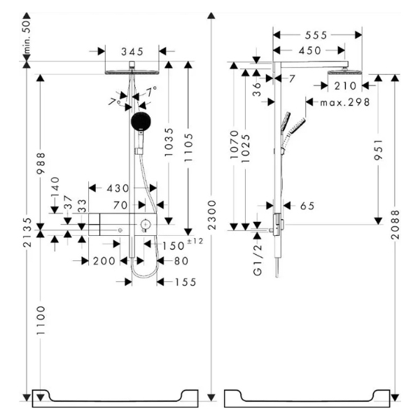 Capul de duș generos (210 x 340 mm) oferă o experiență de tip rain shower: