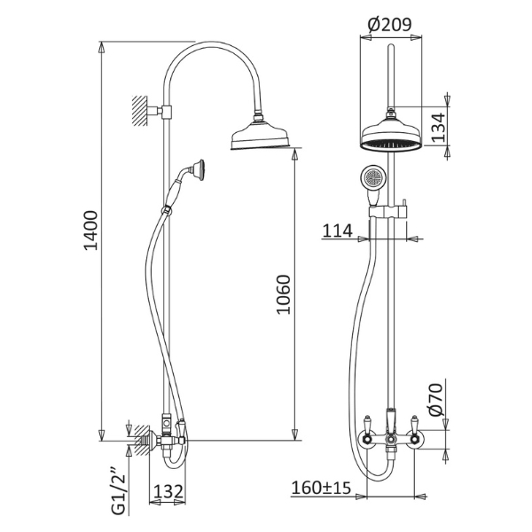 Inaltime sistem dus: 1400 mm